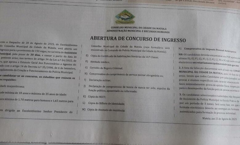 Saiba mais – https://radarinfomz.com/concurso-policia-municipal-matola/