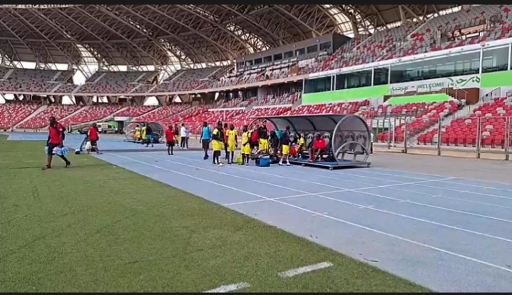 Mambas reconhecem Estádio Miloud Hadefi antes do jogo com a Somália