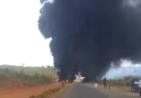 Um camião cisterna que transportava combustível líquido despistou-se e incendiou-se na manhã desta quinta-feira, junto a uma ponte no distrito de Vanduzi, província de Manica. O acidente gerou um incêndio de grandes proporções, assustando moradores e condutores que passavam pela via.