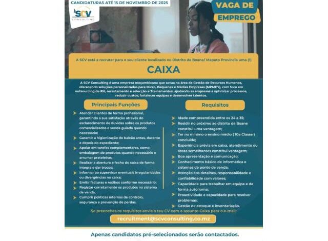 A CONTACT Moçambique, está à contratar: Motorista (m/f) – 1 vaga No âmbito do Projecto de Desenvolvimento Urbano do Norte de Moçambique (PUNM), o nosso cliente pretende recrutar: 1. ENQUADRAMENTO O Governo de Moçambique …