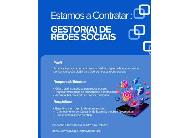 Vaga para Gestor(a) de Redes Sociais