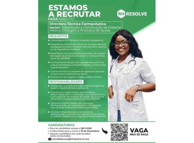 Vaga – Diretora Técnica Farmacêutica