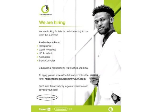 A TJ Consultants, Abre (05) Vagas de emprego em Diversas áreas