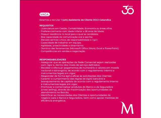 Vaga – Assistente de Cliente para integrar a DCCI-Direcção Coordenação