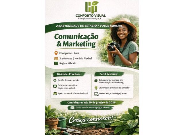 Vaga – Estágio/Voluntariado – Comunicação e Marketing