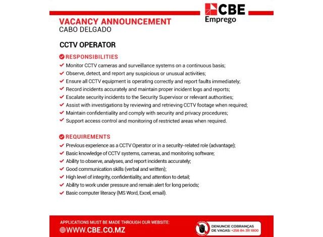 Vaga – CCTV Operator – Mais Vagas