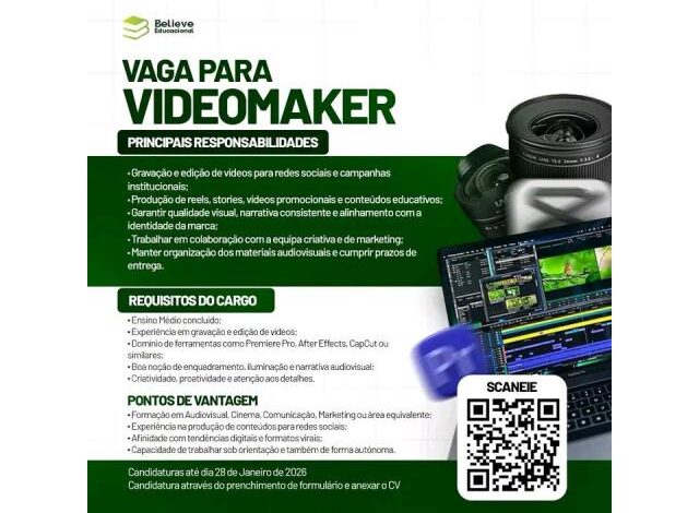 Se você gosta de contar histórias através de vídeos, criar conteúdos envolventes e transformar ideias em materiais visuais de impacto, esta oportunidade é para si.
