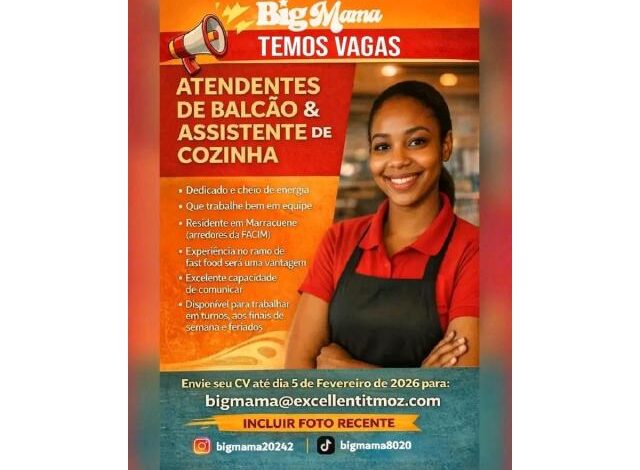 Vagas para VAGAS – Atendentes de Balcão & Assistente de Cozinha