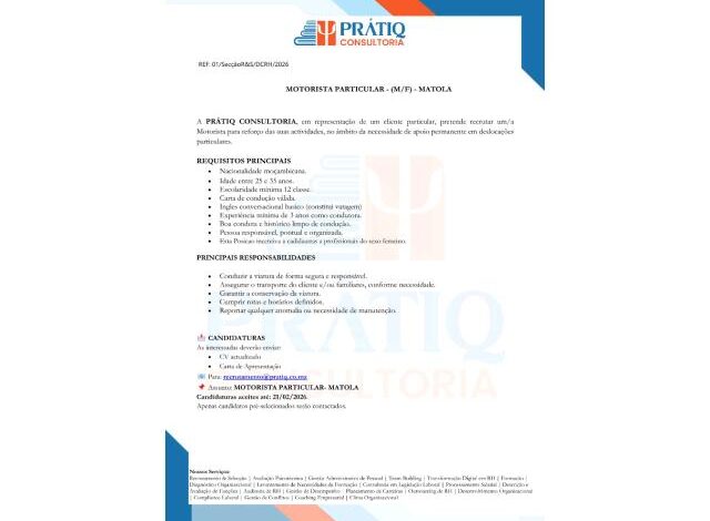VAGA – MOTORISTA PARTICULAR – Mais Vagas
