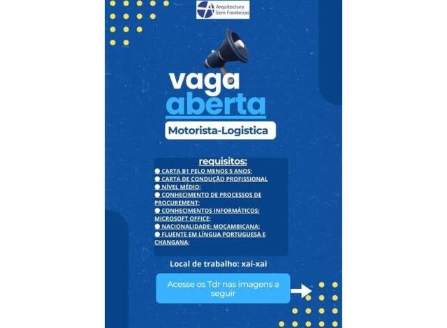 Vaga para Motorista-Logistica – Arquitectura Sem Fronteiras